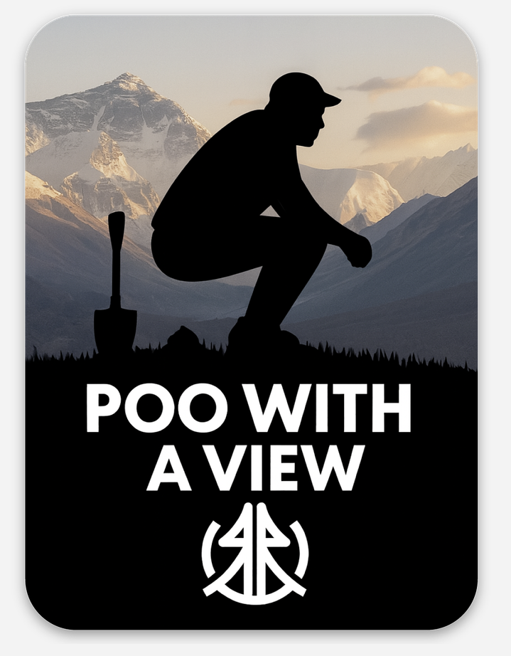 Because even nature calls, you deserve epic scenery. Our “Poo With a View” sticker celebrates the reality of backcountry life—with a playful nod to responsible outdoor ethics. Featuring a silhouette design against a stunning mountain backdrop, complete with a trusty trowel, this sticker is perfect for anyone who’s mastered the art of Leave No Trace.
